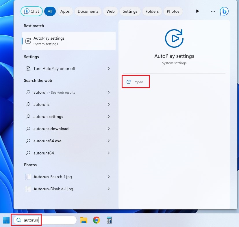 Please select “Bluetooth and devices” -> “Autorun” as above.